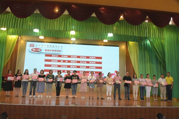 接着是爱心家长和最美志愿者的颁奖仪式。每天校园里,总看到他们忙碌的身影,为孩子的安全保驾护航。默默奉献,美化校园和传递正能量的他们为绩西小学增添了一道亮丽的风景线。伴随着师生们热烈的掌声,何桂雄校长和校委代表李明先生为这群最可爱的人颁发了荣誉证书。