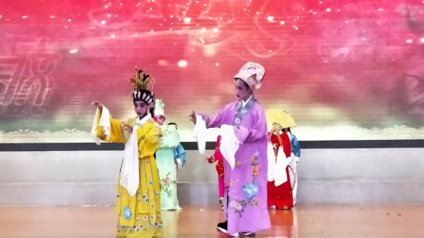 最后,绩西小学挑选了精彩的节目粤剧行当《粤韵生花》、粤剧选段《花木兰》和广东舞蹈戏剧职业学院的独唱《梦断定情剑》、粤剧基本功展示《红豆新苗展新姿》作为助庆表演。俗语讲台上一分钟,台下十年功,广东舞蹈戏剧职业学院十六级学生表演的粤剧基本功精彩极了,演员们表演的翻跟斗、水袖舞、一字马等高难度基本功动作和唱、做、念、打等基本功表演得淋漓尽致,让师生们大开眼界,叹为观止,赢得台下观众阵阵热烈的掌声。