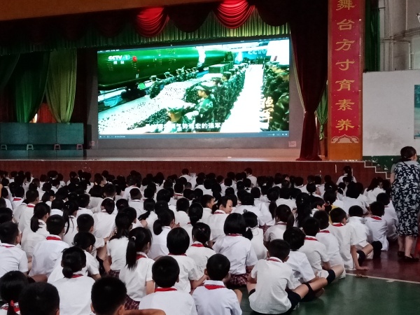 9月10日,伴随清新的秋韵,绩西小学组织全校师生在体育馆观看《强军梦·家园情》国情教育片。