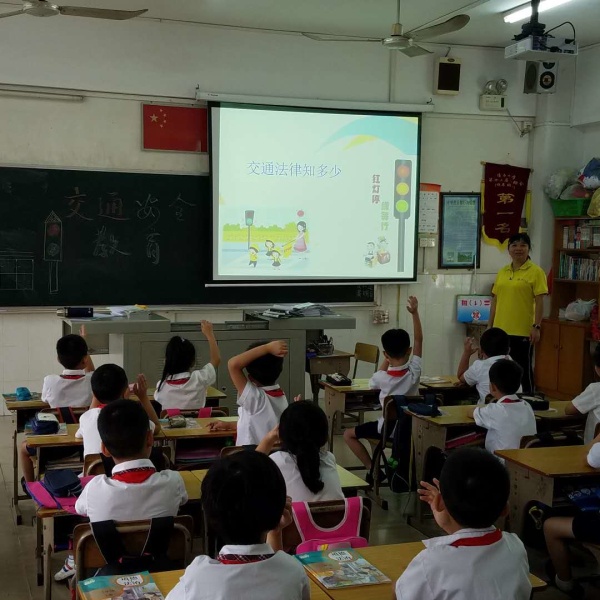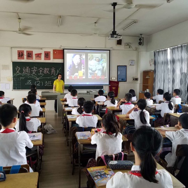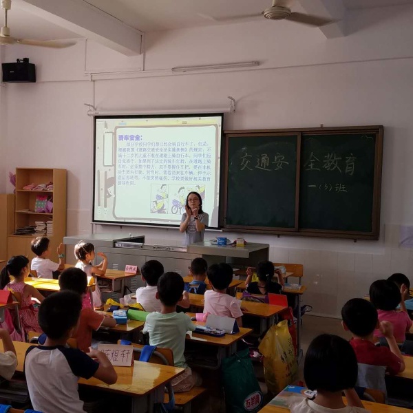课堂上老师们提醒学生:要懂得珍惜生命,不在道路上玩耍,过马路须要走人行横道(斑马线),遵守交通信号的指示,不要在车辆附近玩耍,驾驶室有很多盲区,司机不一定能注意到。教育学生提高交通安全意识,让他们从小养成遵纪守法的美德。同时希望通过小手拉大手的形式,让孩子转告父母——在放学接送孩子时,请自觉将车辆停在停车位上,不要拥挤在校门口及周边路段,不要在学校门前路段随意掉头,以免造成交通拥堵。