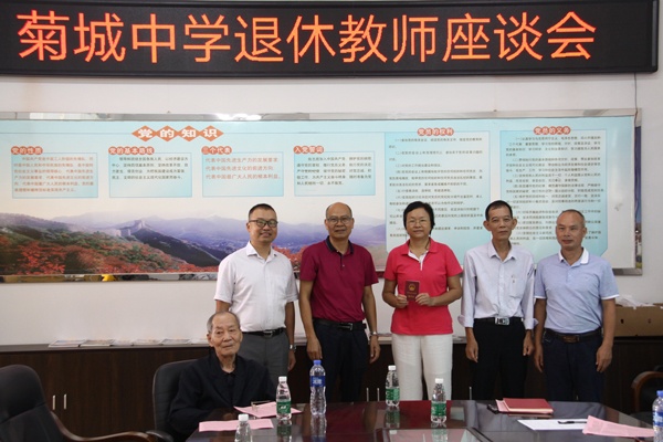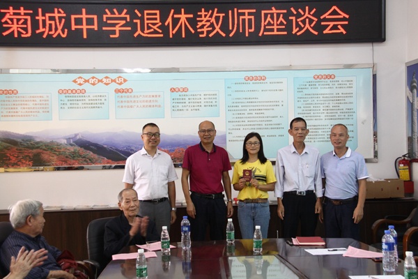 2019年9月3日上午,17位退休教师回到工作过的菊城中学,填写小榄镇住房改革补贴的表格,听取了王永月校长对菊城中学近年来取得丰硕成果和校园建设的汇报,同时参观校园,感受校园变化。