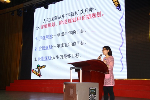 4月9日下午,小榄镇菊城中学初一年级利用班会课时间在学校体育馆举行了人生规划专题讲座,讲座由罗小萍老师主讲。初一年级全体师生参加本次活动。