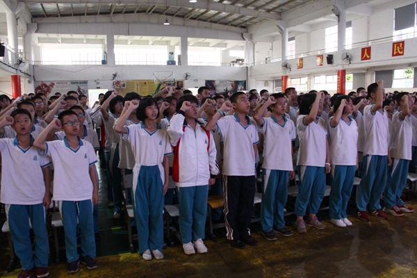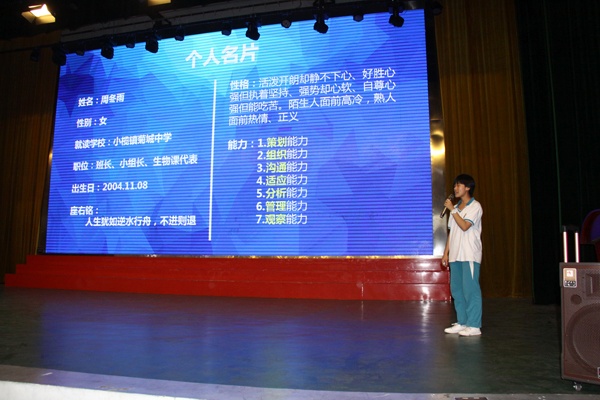 怎样书写自己的人生规划书呢?罗老师从格式、步骤、内容等方面进行具体的指导。她指出,主要从以下六个方面制定:一、自我评估;二、人生理想或职业生涯目标;三、目标情况分析;四、职业定位;五、制定人生规划或职业生涯路线;六、评估、调整与优化。接下来,罗老师请二(7)班周冬雨同学向同学们展示她写的人生规划书。这样,既有方法讲解,又有同学示范,让初一同学们懂得了怎样去规划自己的人生,怎样去书写人生规划书。然后罗老师又播放了刘媛媛演讲的《寒门出贵子》视频,点燃了同学们的热情,激发了他们的斗志。最后同学们庄严宣誓:“……人生如此美好,青春岂能虚度!为理想奋斗,我定成功。”把讲座推上高潮。