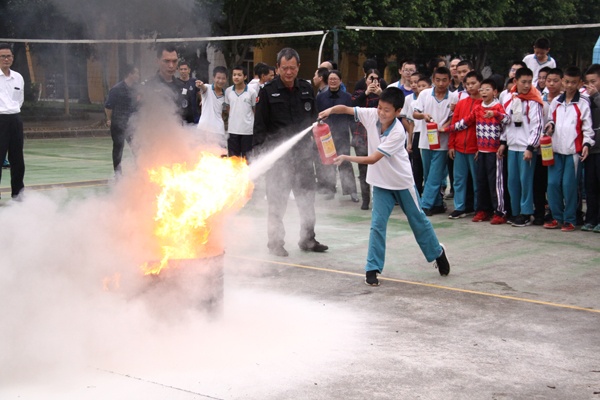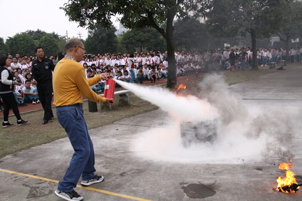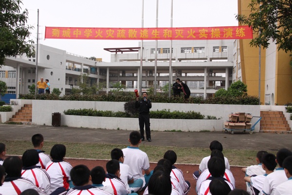 为了加强学校的安全工作,提高师生的安全防范意识,掌握避险技能,提高应对突发事件能力,保障师生的生命安全,打造平安校园,3月26日,在第24个全国中小学生安全教育日到来之际,菊城中学联合小榄保安服务公司和绩西社区消防站共同举行了一次火灾疏散逃生和灭火实操演练活动。镇文体教育局邓永飞副主任、小榄保安服务公司黄志东常务副总经理、绩西社区消防站黄健波站长等以及学校全体师生共1500多人参加了活动。