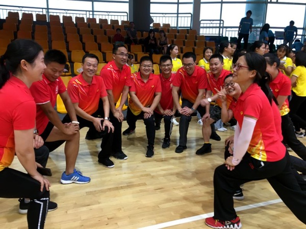 本次党团知识趣味运动会共分:男女混合跳大绳,步步为赢,老马识途,珠行万里,党团知识闯关五个项目。比赛现场气氛紧张,异常激烈,扣人心弦。每一个项目都要考验老师们的体力和团体合作能力,在男女混合跳大绳项目中,四男四女的组合拧成一团,在强而有力的节奏中起伏跳动,选手们的心都是团结一致的,最终跳大绳的项目在20个队伍中勇获第二名的好成绩。在步步为赢的项目中,老师们需要手持三块砖依次放在地面上踩着砖头快速通过,这非常考验个人的协调能力和平衡力,只见老师们从容淡定、有条不紊地一块接一块地移动、行走,极大地考验了老师们的耐力。在其他项目的比赛中,永中的老师们更体现出团结合作,精神饱满,认真作答,每个项目均以接近满分或名列前茅的成绩出线。