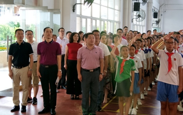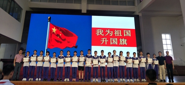 2019年9月2日上午,中山市永宁中学在体育馆举行了“五星红旗,我为你自豪”主题开学典礼。永宁中学陈清茂校长、陈华梁副校长、杨青华副校长、各部门负责人及全体师生出席本次开学典礼。活动由教导处龙小红主任主持。