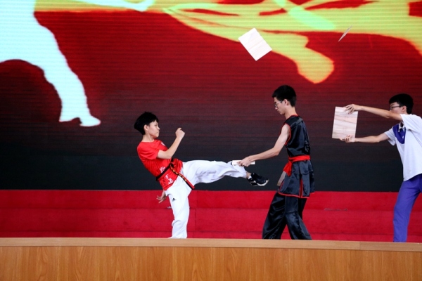 文艺汇演节目丰富多彩,精彩纷呈。三(3)班的朗诵《毕业心声》声情并茂,倾诉了全体初三学子们的心声;三(1)班的武术表演《武术少年》紧张激烈,展现了中华武术的非凡魅力;三(2)班的街舞旋转飞舞,挥洒自如,博得全场阵阵欢呼声、尖叫声……