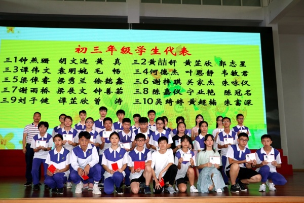 首先,刘鹏校长致辞。刘校长衷心感谢初三全体教师辛勤付出,衷心祝愿初三学子们都能够实现自己的理想,希望同学们常回母校看看。刘校长并为学生代表颁发毕业证书。紧接着,龙小红主任宣读优秀毕业生名单,并为他们颁奖。