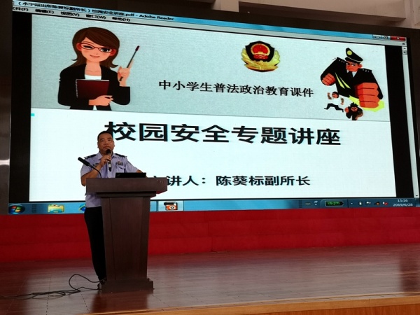 针对初三学生刚考完中考和即将毕业离校,为了让初三学生平安、愉快、健康、安全渡暑假,永宁中学特邀永宁派出所陈葵标副所长为全体初三学生作《校园安全专题讲座》。陈所长从新型毒品、扫黑除恶、扫黄打非三方面结合自身办案经历和典型案例,要求学生在第三代毒品面前要做到识物、识人、识环境、保持警惕意识;要求学生不准参与涉黑涉恶势力团伙,认清黑恶势力的危害,敢于向政法机关提供黑恶势力犯罪线索,坚决同黑恶势力作斗争;要求学生们积极参与“扫黄打非”工作,不看黄色内容的书刊、音像制品、电子出版物和淫秽色情信息、不使用非法出版物等,共同维护健康的社会文化环境。学生们认真听讲,不时报以热烈掌声,表示认同和决心。