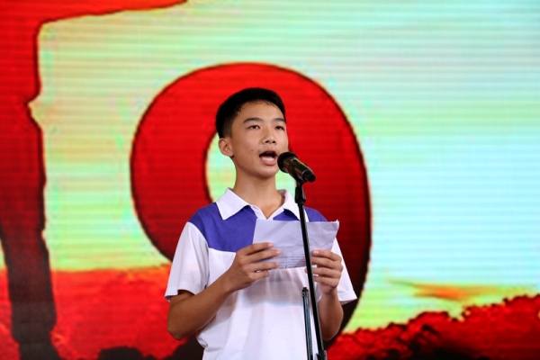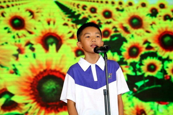接着,初一(6)班徐炜烨代表全体同学向初三学生送祝福,祝福学长学姐让七彩的梦在六月放飞,让理想插上翅膀在蓝天下翱翔。