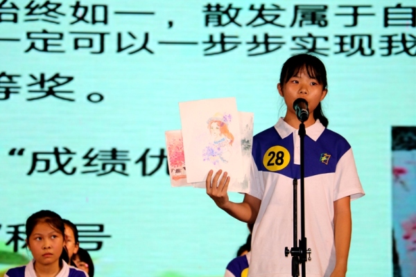 今天下午第八节课,初一、初二年级全体学生、学校全体行政、老师参加了投票活动。30名选手依次演讲, 30个各具特色的ppt幻灯片展示成长轨迹、荣誉收获。优异的学习成绩、丰富的班干经验、多彩的课外生活,无一不打动着现场的观众评委。初三(4)班刘思淇成绩优异、才华出众,身为班干以身作则受到学生支持;初二(6)李颖怡多才多艺充满正能量、乐观亲民,让观众们忽略了小小个子的她;初一(1)班刘莹迎用热情激昂的话语,讲述自己与班级的故事,让同学们获得长久的感动。台上倾情演讲,台下热情互动,绚烂的幻灯片背景,一段段个性展示更是引来了大家热烈的欢呼。整个体育馆内掌声雷动,洋溢着拼搏向上精神氛围。