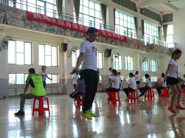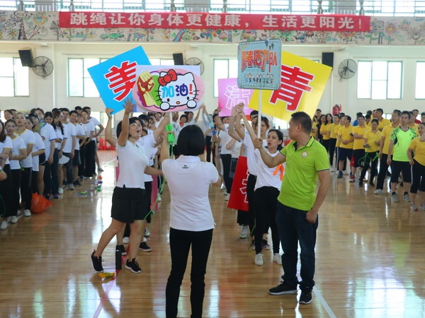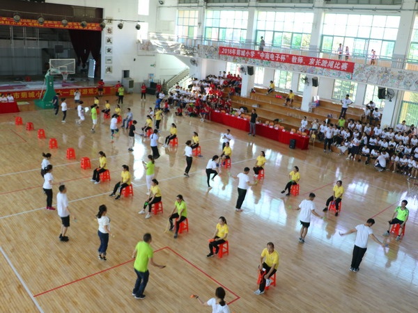 接下来的各年级组比赛把本次活动推向了高潮。体育馆里哨声、摇绳声、加油声……此起彼伏,比赛的气氛异常激烈。