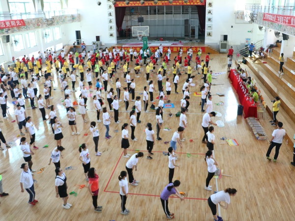 随后,全体参赛老师和家长在关泳钏老师的带领下进行了热身活动。大家做得认真而且投入,每一个动作、每个部位都充分的进行了活动,在音乐声中迅速点燃了体育馆里运动的氛围。