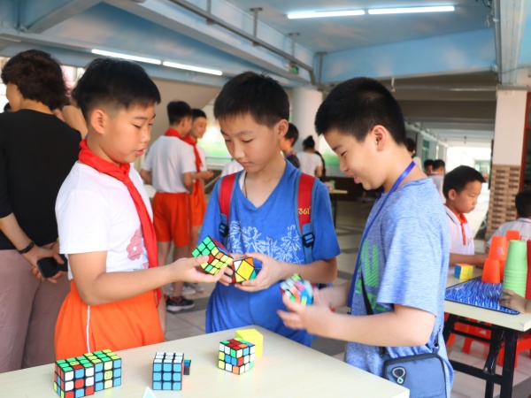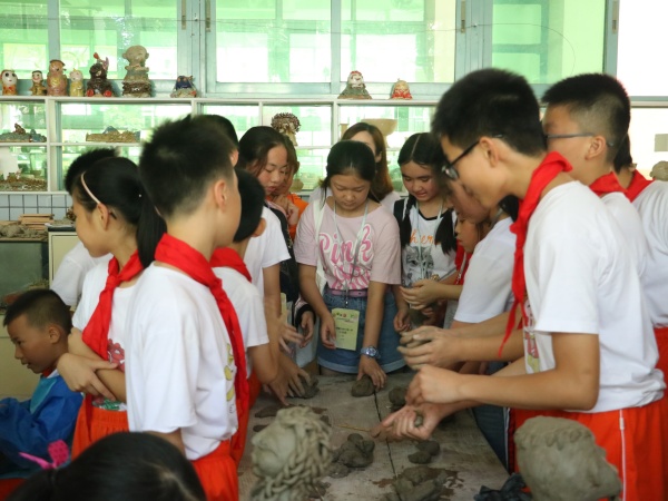 接着,香港的小朋友们分成8个小队,在菊小队员的陪伴下,来到各个红领巾社团进行互动体验。在攀岩社团,大家大胆挑战,相互鼓励;在益智游戏社团,菊小队员手把手教香港朋友,克服一个个难关;在航模社团,大家一起体验“一飞冲天”的豪情;在书法社团和陶艺社团,大家为中华传统文化深深着迷……体验过程中,大家有说有笑,不断增进信任和友谊。