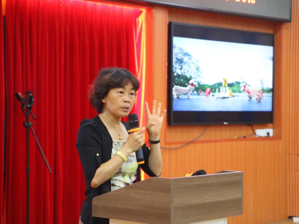 最后,大家在报告厅举行了简短的分享交流。大家先观看了学校宣传视频以及小榄镇新时代宣传片《菊城小榄》。香港的小朋友对菊小和菊城兴趣很浓,提出了许多有趣的问题“这里为什么这么多菊花?”“陶艺是如何烧制的?”……菊城小学陈玉玲校长一一为大家作介绍讲解。在这样的互动中,大家进一步认识了菊城小学,认识了菊城小榄,还了解了有关粤港澳大湾区的知识。在互动中,香港的小朋友也分享了自己的参观交流后的感受“菊城小学好大,好美哦!”“原来内地的城市和学校这么棒!”“菊小的朋友很大方,很热情。”……