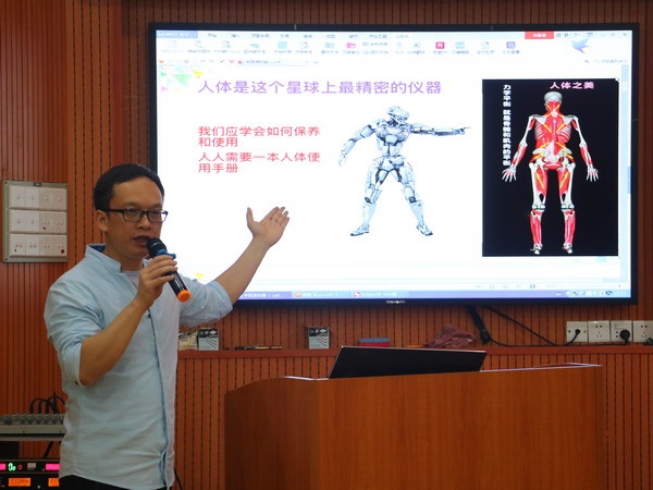 薛炜医生用浅显易懂的语言,时而用医学名词,时而用英文和学生交流,时而举学生看过的动画片为例,向学生零距离地介绍了人体的结构,如何对身体进行保养和使用。