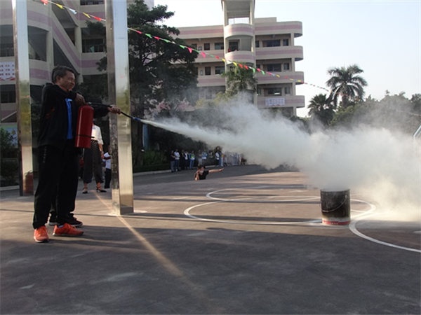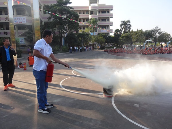 随后学校后勤处何文勇主任向全体师生讲解了灭火器的使用方法,并进行了演示,还请个别教师进行灭火演练,为了让学生能够遇险自救,还特意请初三学生进行了灭火演示,以提高自救能力。