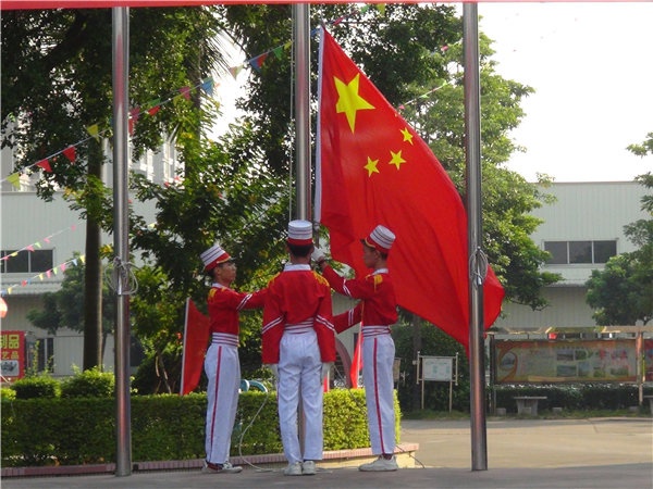 本次活动分为六个流程。1、升国旗,2、唱国歌3、校长在国旗下讲话4、齐唱《我和我的祖国》5、在主持人带领下,进行呼号祖国万岁,6、节目展示。