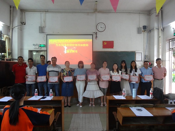 东阳学校团校成立暨团课培训开班仪于9月20日在学校会议室举行。学校校长刘万轩、团支部书记江健锋、团队辅导员黄记英、团校副校长莫锡聪、学校安全主任谢平和团校相关负责老师及100名学员参加了开班仪式。团校成立暨团课开班仪式由团委书江健锋主任和团员干部徐金富同学主持。