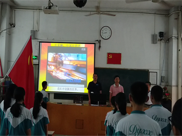 入团仪式开始后,首先全体肃立并奏唱国歌,全体老师和团员在国歌声中唱出自豪。随后黄记英辅导员指出共青团是中国共产党的后备力量,并对新团员们提出殷切的希望。随后她宣布新团员名单,并为他们发放团证和团徽,并在团旗下庄严宣誓。在火红的团旗下,每位团员都表明要为共产主义事业而奋斗的决心。宣誓完毕后,老团员代表朱银兰同学发表入团之后的感想,粟宇峰同学讲述了团员的权利和义务。紧接着刘校长也作了讲话,他希望每个团员要以能够加入共青团为荣,严格要求自己,做好模范带头作用。随后新团员黄彩红同学也发表了自己的感想,希望每位同学都应以加入共青团而感到自豪。团支部还表彰了2018年优秀共青团员,希望全体团员向他们学习,做一个优秀的共青团员。最后在全体团员观看了争做四有青年影片和歌唱《光荣啊,中国共青团》团歌,历时一个小时的新团员入团仪式在团歌声中结束。