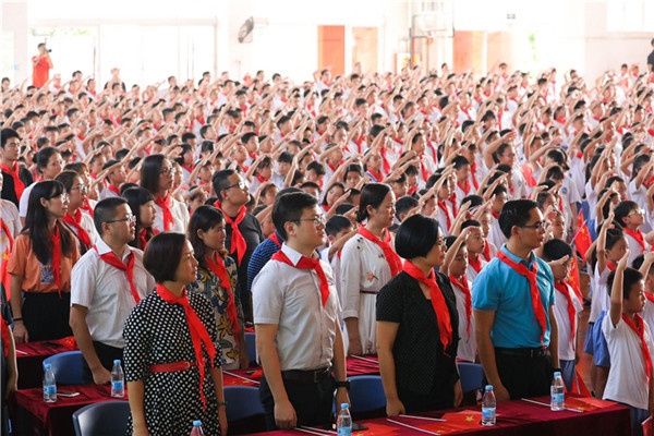 大队辅导员洪智跃老师带领全体队员面向队旗,庄严呼号:“准备着,为共产主义事业而奋斗!”“时刻准备着!”呼号声响彻校园,表达了少先队员们的远大理想和坚强决心。活动在退旗曲中圆满结束。