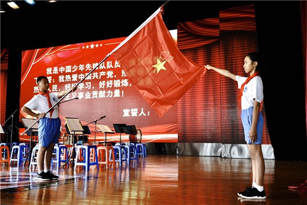 火红的队旗见证着少先队员的成长,让大家集结在星星火炬的旗帜下,以新时代好队员的精神面貌,向队旗,敬礼!望着胸前飘扬的红领巾,新时代少先队员立志努力成长为社会主义现代化建设的合格人才,立志为建设有中国特色社会主义现代化国家贡献力量,做共产主义事业的接班人。