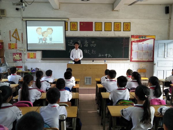 在本次主题班会课上,各班班主任详细阐述了毒品的概念、种类及危害,对毒品做了介绍,让同学们学会分辨,从而更好地拒绝毒品的侵害及何如拒绝毒品。首先从鸦片战争说起,表明我国禁毒的决心,接着说明毒品的种类以及吸食毒品的工具,毒品对个人、对社会、乃至对整个民族的危害。再一一出示少年吸毒、中年吸毒的的真实案例,同学们纷纷为主人公感到痛心和惋惜,花样年华却因毒品而摧毁了整个人生,也让同学们对毒品心生厌恶。