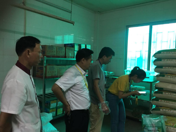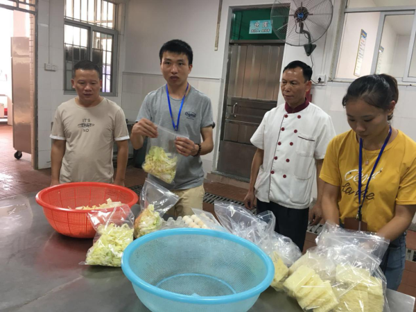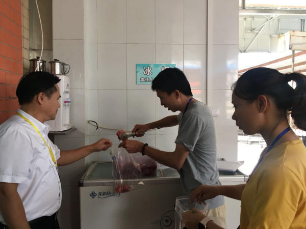 2018年10月8日中午,中山市食品药品监督管理局委托工作人员刘求等一行三人来到小榄吉安学校对食堂食品进行抽样检查。该校校长韦志海、后勤处罗锦信、魏勤英两位主任接待了检查组并陪同检查。