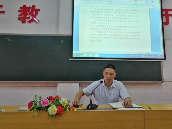 会议伊始,韦校长就对新学期加入吉安大家庭的老师们表示热烈欢迎,接着韦校长简要的介绍了学校行政及其职责,然后简要的介绍了学校的概况以及学校的办学理念、特色。韦校长还从融入团队、钻研业务、快乐生活等几个方面对新老师提出了建议。