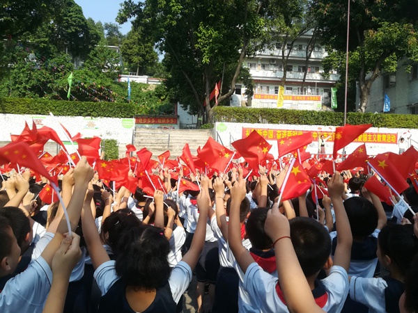 9月30日上午,古镇新徽学校全体师生、部分家长志愿者齐聚学校大操场,为“庆祝中华人民共和国成立70周年”齐唱赞歌。当五星红旗冉冉升起,嘹亮的国歌在在操场上空激荡,伴随着国歌声拉开了此次活动的序幕。