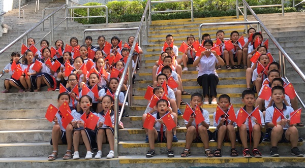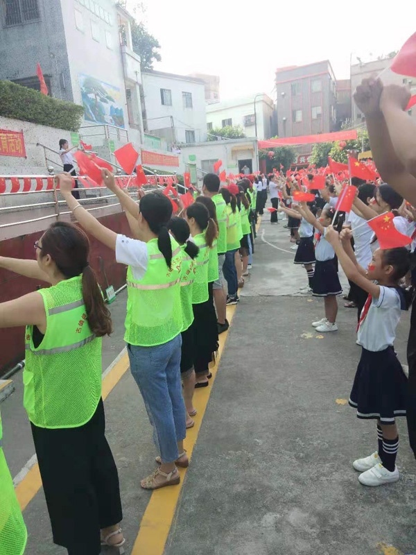 当全体师生、家长志愿者齐声高唱《歌唱祖国》、《我和我的祖国》时,更是将活动推向了高潮。顿时间,嘹亮的歌声响彻校园。两首歌曲将全体师生的爱国主义热情表现得淋漓至尽,全体师生用十二万分的热情,伴随着歌声整齐的挥舞着手中的国旗,以表达自己对祖国的热爱。