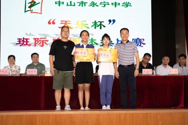 经过激烈角逐,各队名次尘埃落定。王志珍副主任宣布比赛结果,初一(1)、(7)班获得特等奖,初一(2)、(4)、(10)获得一等奖,其他班级获得二等奖,梁辉洪先生、陈清茂校长、刘健先生、陈锦萍女士等领导嘉宾分别为获奖班级颁奖状和奖金。本次比赛奖金由天乐咨询服务公司赞助,陈清茂校长代表学校向天乐咨询服务公司董事长梁辉洪先生赠送纪念品鸣谢。