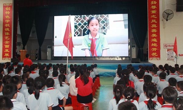 仪式第二部分,进行了少先队抗疫诗歌展演,诵声琅琅,字字铿锵,表达了队员们感恩前线战士的付出,要珍惜生命,努力学习。其后是亲子传情环节:凌厅同学和她的妈妈心语对话,情真意切,感人至深,现场还播放了家长对孩子们想说的话,以及孩子们想对爸妈说的话视频,家长们悠悠叮咛,声声鼓励;孩子们纷纷表示在校做个好学生,在家做个好孩子,努力学习,天天向上。