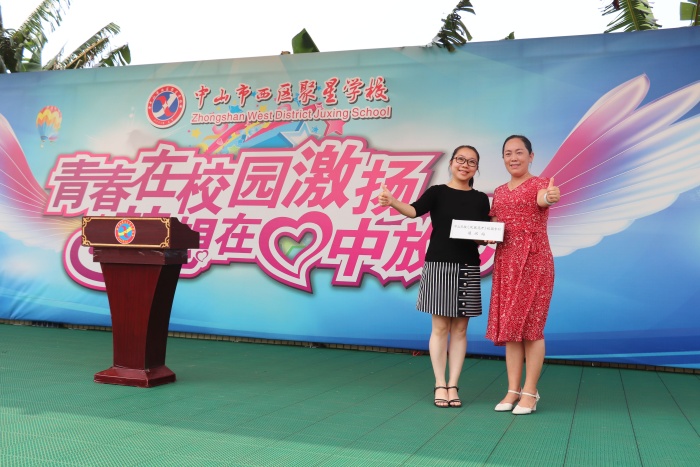 中山报业传媒股份有限公司教育工作室总监罗展新女士向聚星学校路海云校长授牌,标志着中山日报《凤凰花开》聚星学校通讯站正式成立。