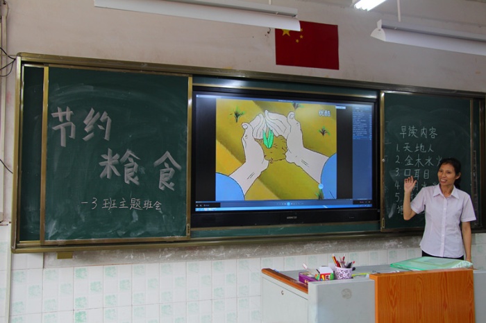 参加完升旗仪式,各班开展了节约粮食的主题班会。各班主任通过多媒体屏幕和同学们朗读了《悯农》这首诗,“春种一粒粟,秋收万颗子。四海无闲田,农夫犹饿死。”这几个字格外醒目,教育了同学们要知道每一粒粮食都来之不易,提醒同学们珍惜粮食、减少浪费。老师还向同学们讲解了节约粮食的重要性和浪费粮食的危害性。通过观看节约粮食的小短片,每一个画面生动形象,教育和引导学生要从自身做起,养成节约粮食的好习惯。