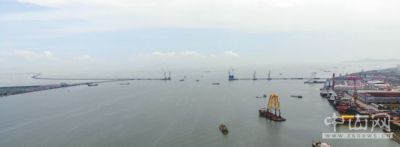 2020年5月1日拍摄的正在建设中的深中通道。据悉,深中通道是集“桥、岛、隧、水下互通”于一体的世界级工程。该项目沉管隧道长约6.8公里,共由32节沉管管节和1个最终接头组成,是世界首例双向八车道钢壳混凝土沉管隧道。深中通道建成后,中山市民可30分钟到达深圳宝安国际机场,这条交通大动脉将是促进深圳、中山两地一体化发展的重要纽带,计划2024年全线通车。本报记者 黎旭升 摄