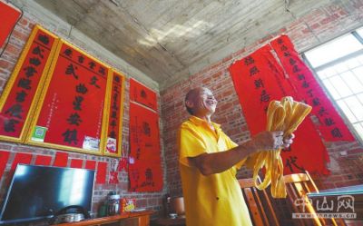 7月25日,肇庆市怀集县诗洞村罗屋自然村的罗东生给客人们介绍和销售自己生产的腐竹。罗东生全家5口人,2016年被列入建档立卡贫困户。2018年扶贫驻村工作队帮助他家危房改造,建起了80多平方米的新房。 同时,在工作队的帮助下,罗东生建起了面积60多平方米的腐竹生产坊,两名村委会干部给罗东生提供技术指导。罗东生的腐竹生产坊全年可增加收入5万元。今年4月份,罗东生自费投资增加了一条生产线,产能比原来翻一番。2020年7月8日,省政协副主席林雄带队来到东生腐竹坊,鼓励他做大腐竹产业,做脱贫致富的带头人。本报记者 明剑 摄