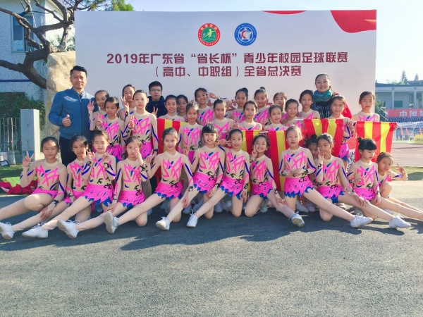 12月4日上午8点50分,由广东省教育厅、广东省体育局主办,中山市教育和体育局承办的2019年广东省“省长杯”青少年足球联赛(高中、中职组)全省总决赛在中山市实验中学足球场开幕。西区中心小学健美操队作为市运会健美操啦啦操联赛团体总分第一名,受邀参与了本次开幕式的节目展演。