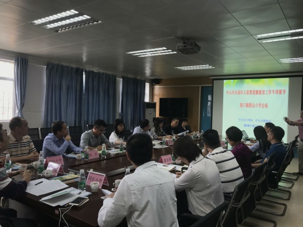 2019年10月30日下午,中山市教育和体育局廖诚副书记、西区教育事务指导中心德育专干苏文森、西区小学李宗心校长和钟明倩副主任一行人到港口群众小学进行中山市创建全国文明校园先进单位的工作汇报。