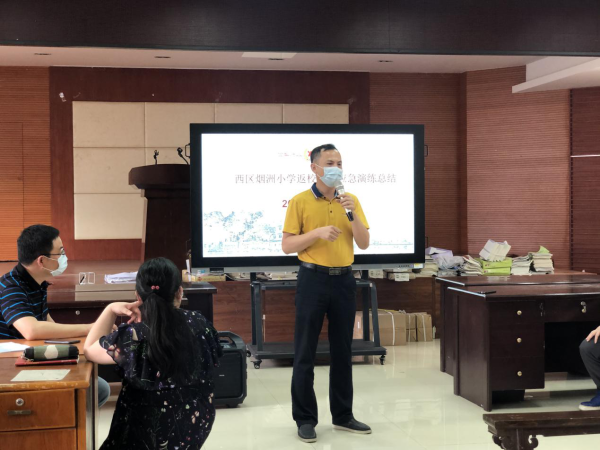 在整个演练过程中,所有参加演练的教职工及行政领导均佩戴口罩,全程服从统一指挥。应急演练结束后,西区文体教育局领导、学校卫生健康副校长作总结发言并对本次演练提出了建议:真正开学后面临的情况会更复杂、更具体,要求老师们以生为本,更加细致地做好各项防控与开学工作,关注学生的课间、放学等,确保学生身心健康。