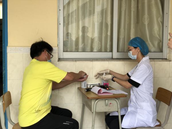 演练按计划时间正式开始。校外值日教师演练维持校门口秩序,确保家长不得进入校区,保障学生秩序和安全。校内值日教师引导进入学校的学生根据地上的脚印有序排队,前后间隔一米,入校门时进行体温检测。演习中模拟发现体温超过37.3°的同学,值日教师引导该同学到临时筛查点,由医生进行体温的再次测量并进行询问有无流行病学史等情况,并根据具体情况做出及时处理。上课演练过程中,由老师扮演的学生模拟出现了体温异常、呕吐等现象,由上课的老师、校医做出正确的应急处理。