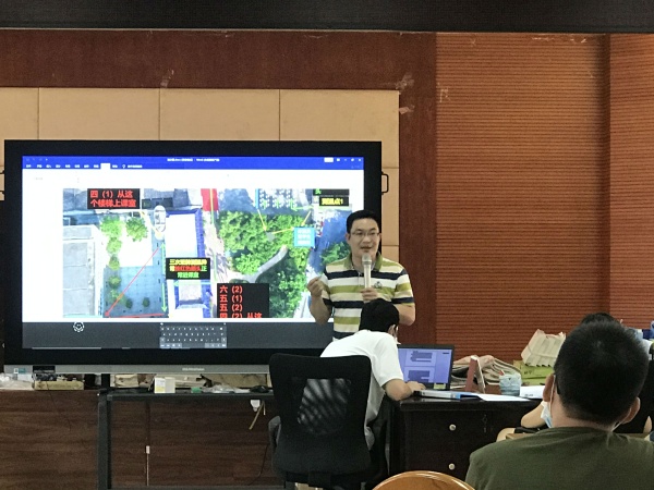演练之前先由学校的专职医生进行了传染病防控演练培训。陈医生分别就因病缺勤的处理、晨午检异常学生处理、课堂上发现学生身体异常的处理方法等作了详细讲解。大队辅导员罗老师就学生从入校到进入教室的流程以及学生大课间、上厕所、放学的路线都作了具体要求。黄文华校长对于大家存在的一些问题进行了细致的解读,杨志坚副校长做了人员的分工。有人扮演学生、有人扮演家长,演练正式开始了!