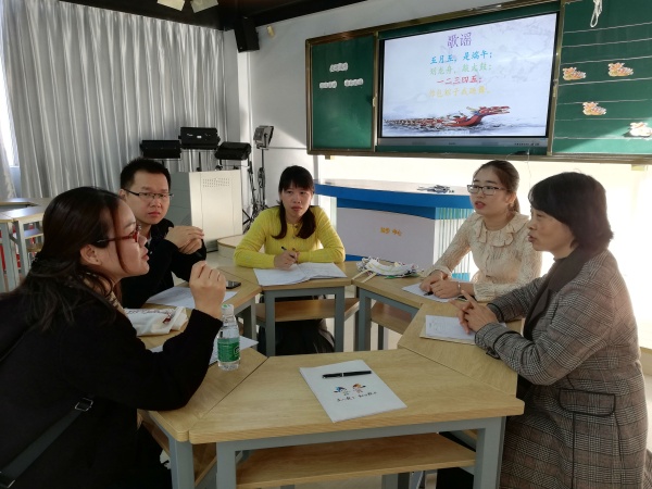 接着,为了让综合科组的教师更直观地感受学校教育信息化应用的成效,盐步中心小学专门开放了各类学科的精彩课堂,让教师进行观摩,科组教师根据任教科目自主选择观摩的课程。综合科三位老师聆听了一节以《“盐步老龙”校本教材》为主题的综合实践课。授课老师注重激发二年级的孩子对传统文化的深爱,以看(龙头、龙身)、讲(故事)、听(老龙曲)、做(拼图)、赛(龙船)等形式,让孩子们对“盐步老龙”有了初步的了解,同时注重对“老龙”精神的深化,这使本土文化有了很好的阐释,也为烟洲小学综合科开展“长洲醉龙”的校本课程提供了参考。执教《探索土地被侵蚀的因素》的科学老师,通过课前让学生完成实验研究计划,确定实验探究题目、提出合理的实验猜测、制定实验方法等,让学生的科学思维得到了很好的锻炼;在小组进行实验结果汇报时,其他小组的质疑及师生的及时归纳总结,不仅完善了学生的实验设计方案,还培养了学生善于质疑的科学探究精神。激情的课堂、投入的师生、精彩的讲授使得教师备受启发。而体育课《立定跳远》,整体设计都是从学生的年龄特征出发,李老师很好地把握住课堂常规,巧设情境导入,激发学生的兴趣,课堂上老师循循善诱,安排了许多竞赛,灵活多样的跳法练习,为学生创设公平竞争的气氛,留给学生一定的活动天地,并让学生在观察思考中得到启示和锻炼,真正调动了学生的积极性,提高了学生的竞争意识。音乐科的青年教师潘婉华带来了一节听赏课《跳圆舞曲的小猫》。潘老师教态亲切,教学步骤清晰,教学方法丰富多样,良好地达成了本节课的教学目标。课后,两校音乐教师进行了评课交流活动,青年教师思维活跃,提出了不少颇具新意的教学设想;中年骨干教师经验丰富,为帮扶青年教师快速成长起到了引领的作用。