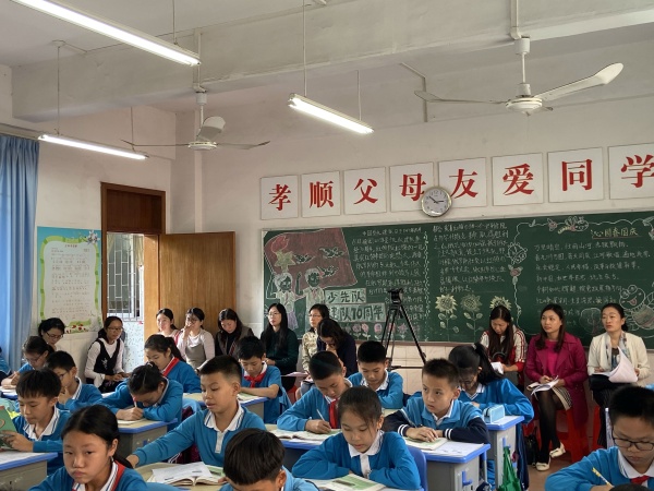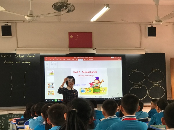 活动由沙朗小学杜镇材副校长主持。首先由课题组成员黎焕兴老师结合课题研究内容,执教一节五年级Unit5 School Lunch阅读拓展课。她围绕“食物”这个主题,设计课堂教学目标、内容和活动,并根据课题要求在读后环节补充一篇阅读校本材料进行拓展延伸。黎老师利用口头、笔头训练,引导学生语言输出,通过拓展阅读,强化学生的阅读策略与技巧。随后,在评课环节,每位听课老师都畅所欲言,提出了自己的见解和建议。最后是课题主持人王艳霞老师向与会老师简单讲述了市级课题研究开展情况,以及分级阅读校本材料的开发和实施策略。
