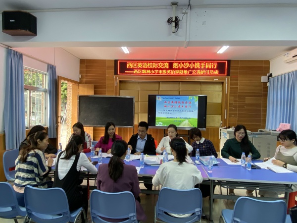 为进一步加强课题研究,促进课题组老师自身专业成长,扎实推进课题研究推广交流进程,11月28日下午,西区烟洲小学市级英语课题《小学英语分级阅读校本材料的开发与实践研究》推广交流研讨活动在西区沙朗小学开展。西区烟洲小学课题组成员、沙朗小学莫惠冰校长以及英语科组全体老师参加了本次交流研讨活动。