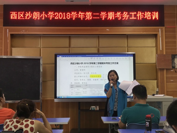 为了保证本学期期末考试顺利进行,确保操作零失误,6月26日下午4:30,西区沙朗小学全校老师齐聚在阶梯室参加了2018年度第二学期考务会议。