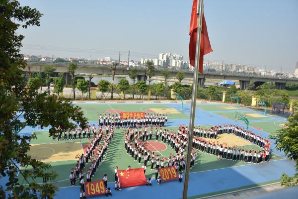 最后,全体师生的队伍排成“70”字样和爱心造型,并打出“祖国生日快乐”、“1949-2019”的横幅,表达了全体师生对庆祝新中国成立70周年的喜悦和对祖国无限热爱之情。