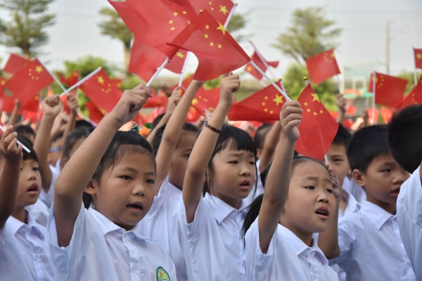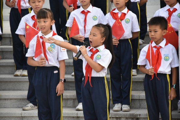 国旗升起后,西区广丰小学的梁庆助校长发表了热情洋溢的讲话,梁校长向广大师生致以节日的问候和祝福,他号召全体师生都要热爱伟大的祖国,师生之间也要相互尊重、相互包容、相互帮助。接下来是来自三(6)中队的少先队员代表宋雨轩进行国旗下讲话,三(6)中队全体队员和周新桥老师也献上精彩节目:配乐朗诵及爱国歌曲联唱演唱《今天是你的生日,中国》、《龙的传人》和《我的中国心》。最后大队辅导员夏艳老师做了总结并带领全体师生集体欢呼“祖国万岁!”