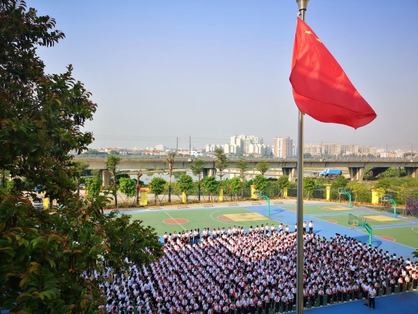 2019年9月30日清晨,西区广丰小学举行庆祝新中国成立70周年升旗仪式,全校师生参加了升旗仪式。在嘹亮庄严的国歌声中,升旗手将鲜艳的五星红旗冉冉升起,师生们向国旗致以庄严的注目礼,爱国的激情在师生心中澎湃。