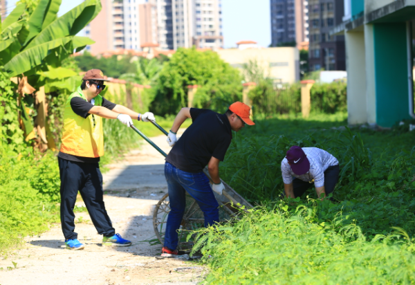 活动中,梁庆助校长、家委会长谢晓明、副会长冯建光身先士卒,以身作则,积极投入到除草的劳动当中。劳动中的志愿者不论年龄的长幼,拔的拔、割的割、铲的铲、剪的剪,有的负责道路坑洼地的填土工作,有的负责专门割草,还有一部分志愿者负责运送杂草和打扫道路,劳动现场热火朝天,分工有序,虽然天气炎热,但劳动的干劲一点没有受到天气的影响,劳动中没有听到一句怨言,随处能听志愿者劳动中愉快的笑声,人心齐,干劲大,不到2个小时,清理出来的杂草运到了指定位置,道路两边的杂草也都安静的回到了它们自己的“领地”,道路明显变宽了,视野明显开阔了,相信通过这次活动,往后堵塞的情况一定能有明显的改善。